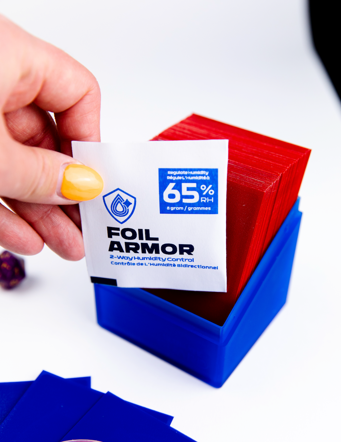 Foil Armor® 2-Way Humidity Control Packs are designed to maintain an optimal level of moisture in your trading card storage. Unlike traditional silica gel packs, which only absorb moisture, Foil Armor® packs both absorb and release moisture, ensuring that your cards remain at the perfect 65% relative humidity (RH) level to prevent curling or warping. These packs are safe to use with all types of trading cards, including those made from premium materials like foil and holographic cards.